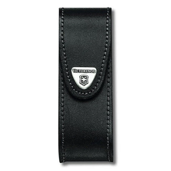 The Large Leather Lockblade Clip Pouch by Victorinox has a Velcro closure and a strong metal belt or waistband clip. This pouch fits lockblades with 4 – 6 layers.
