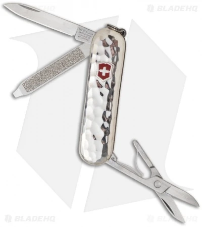 The Victorinox Classic SD Hammered Sterling Silver Swiss Army knife is the classic Swiss Army Knife in stunning silver-plate. Featuring seven popular implements, it is functional and versatile, and yet with a closed length of just 2.25″ it is compact enough to fit in your pocket.